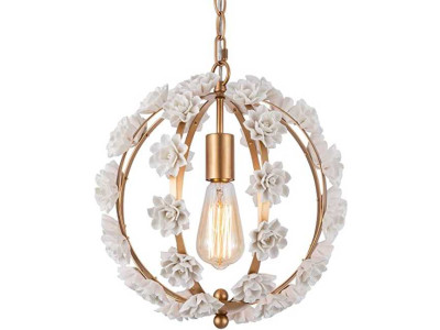 Metal Ceramic Flower Chandelier Home Lighting American Vintage Hanging Lighting Pendant Lamp